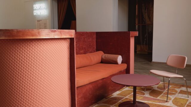 Bag designet af festivalcentrum på Kunsthal Charlottenborg står arkitekterne Sarah Falk Fredelund og Terroir v. Mikkel Møller Roesdahl. Med tekstiler fra Gabriel og møbler fra Montana har de skabt et rum, der indbyder til både fordybelse, samtale og fest – og som alle er inviteret med ind i.