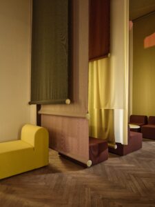 ”Det gælder for både film og tekstildesign, at de formes af detaljer, som man ikke nødvendigvis lægger mærke til: Tekstur, tone og atmosfære. Med vores bidrag til CPH:DOX udforsker vi hvordan midlertidige rum kan inspirere til længerevarende forandring. Vi ser det som et lille eksperimenterende laboratorie, hvor mennesker mødes, udveksler idéer og tester nye perspektiver. Ved at bringe mennesker sammen i på en inkluderende og respektfuld måde bliver det en del af et større kulturelt spænd, der viser, hvordan midlertidige installationer kan sætte gang i mere permanente og bæredygtige tilgange til design,” lyder det fra Cenk Kivrikoglu, Creative Director hos Gabriel.