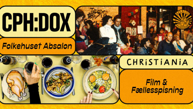 CPH:DOX and Absalon invite you inside for an evening of film and communal dining. Join us for a night that begins around the table and continues in front of the screen with a screening of 'Christiania'. Experience how stories and shared meals can create space for dialogue, reflection, and collective inspiration.