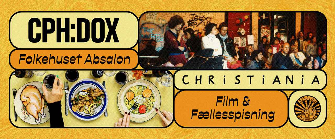 CPH:DOX and Absalon invite you inside for an evening of film and communal dining. Join us for a night that begins around the table and continues in front of the screen with a screening of 'Christiania'. Experience how stories and shared meals can create space for dialogue, reflection, and collective inspiration.